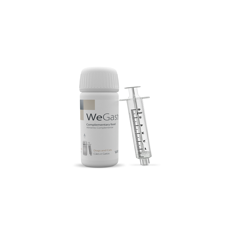 WeGastro® é um alimento composto complementar para cães e gatos constituído por ingredientes que contribuem para a proteção e manutenção da normal função gástrica.