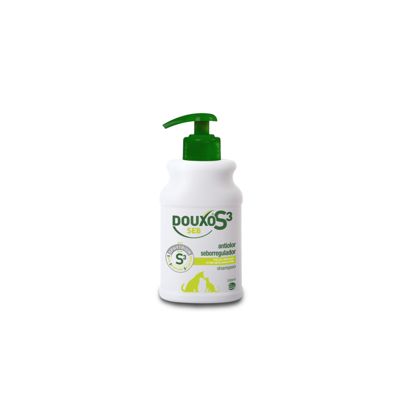 Produto indicado para cães e gatos, adjuvante tópico no controlo das dermatites querato-seborreicas. Promove a higiene, hidratação, reestruturação, regulação da produção do sebo e proteção cutânea. Contribui para a diminuição do odor desagradável típico dos estados querato-seborreicos e melhora o aspeto da pele e da pelagem. Ingredientes: Fitoesfingosina, Fomflim, Perfume de chá verde. Sem parabenos. Modo de emprego: Molhar o animal com água morna. Aplicar o champô sobre a pelagem, massajar e deixar atuar durante 5 a 10 minutos. Enxaguar abundantemente. Se necessário, repetir a aplicação. Frequência de utilização conforme recomendação do médico veterinário. Regra geral, aplicar 2 a 3 vezes por semana, durante 3 a 4 semanas. Pode ser utilizado em associação com DOUXO® Seb Mousse ou DOUXO® Seb Micro-emulsão spray. Ler o rótulo antes da utilização. |