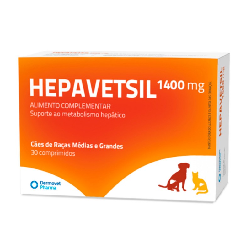 Comprimidos de suporte nutricional à função hepática, para cães de raça média e grande, palatável, com sabor a fígado. O Hepavetsil contém betaína, curcuma, cardo mariano e vitamina E. A betaína atua como osmorregulador, protegendo as células, moléculas como proteínas e enzimas, e tecidos como a mucosa gástrica.