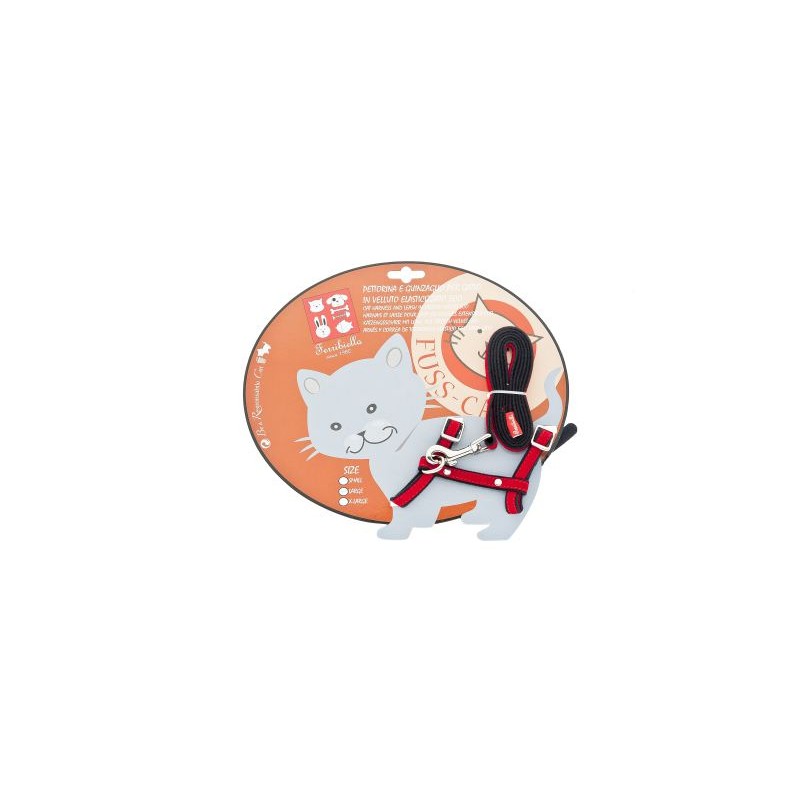 Arnês e trela que se adapta à necessidade de cada gato, graças ao material com que este produto é fabricado é 100% resistente.