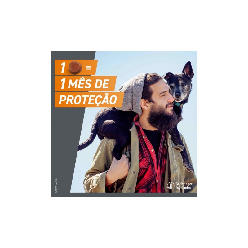 Comprimido mastigável altamente palatável, com a textura e consistência adequadas. Pode ser administrado com ou sem comida.
