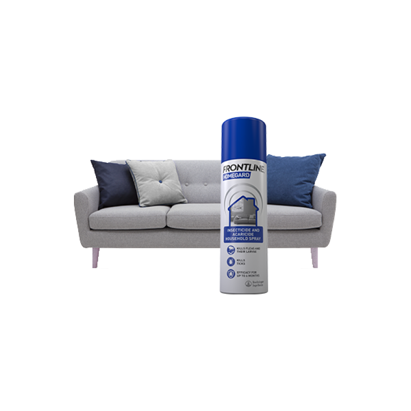 Frontline Homegard é um spray de uso doméstico específico para mobiliário não lavável e têxtil-lar como carpetes, tapetes ou cadeirões, desenvolvido para o tratamento de infestações de pulgas e carraças.